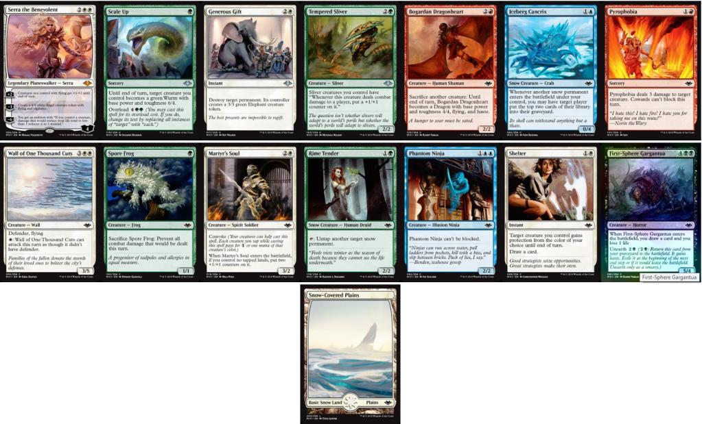 This first version of our draft deck focuses on the original plan of our deck. It centers mostly on Serra and Bogardan Dragonheart. The deck also splashes in a bit of Sliver creatures to push some extra damage through. This deck focuses more on the aggro and evasion parts of the BREAD method.