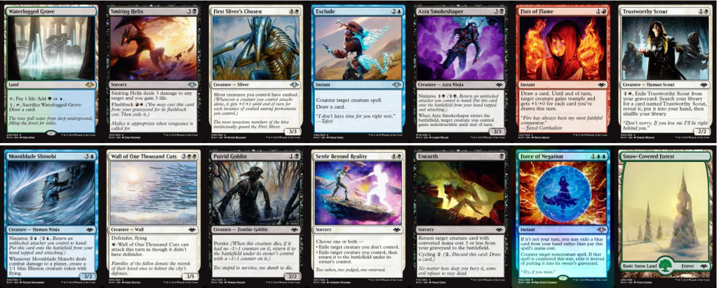 The third pack of the draft greatly inspired this version of our deck. Swapping out the red for blue in the deck allows us to play the game a little more safely. Our hate drafted Force of Negation pushed this option over the edge.